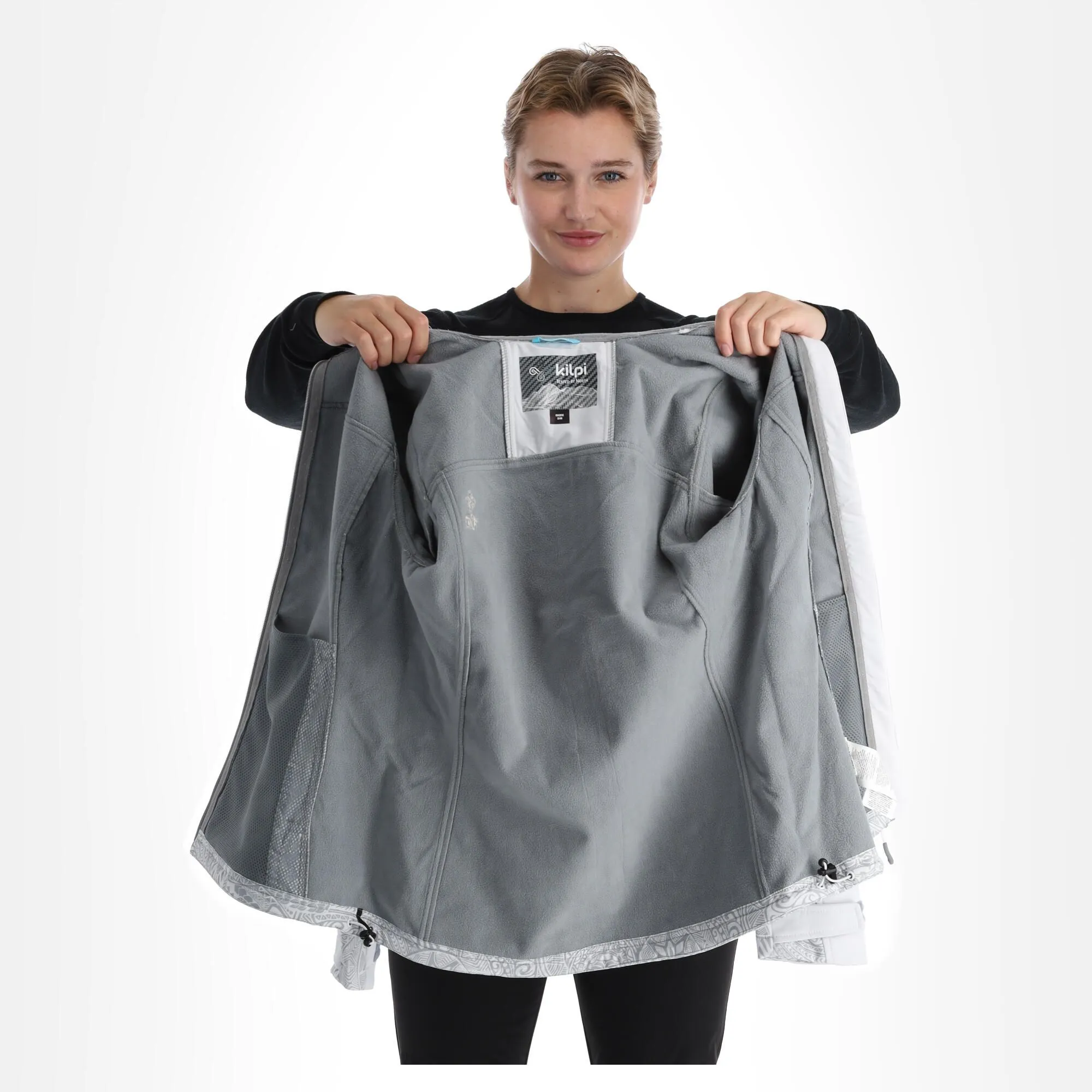 De Kilpi RAVIA-W dames softshell jas is gemaakt van duurzaam softshell materiaal met een warme fleece binnenlaag en een membraan dat effectief beschermt tegen kou en wind. De afneembare capuchon is verstelbaar met trekkoord en klittenband. De jas heeft twee zakken met rits. De breedte van de mouwzoom kan worden aangepast met klittenband, de onderste zoom heeft een trekkoord.